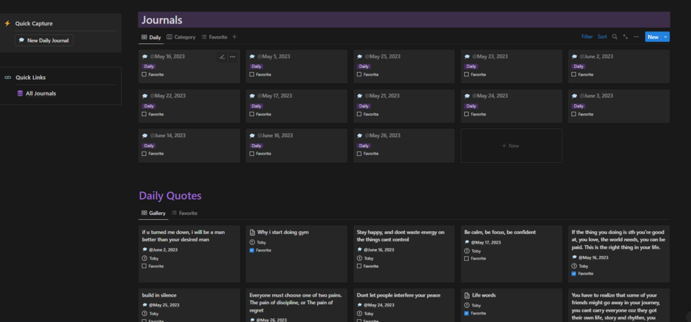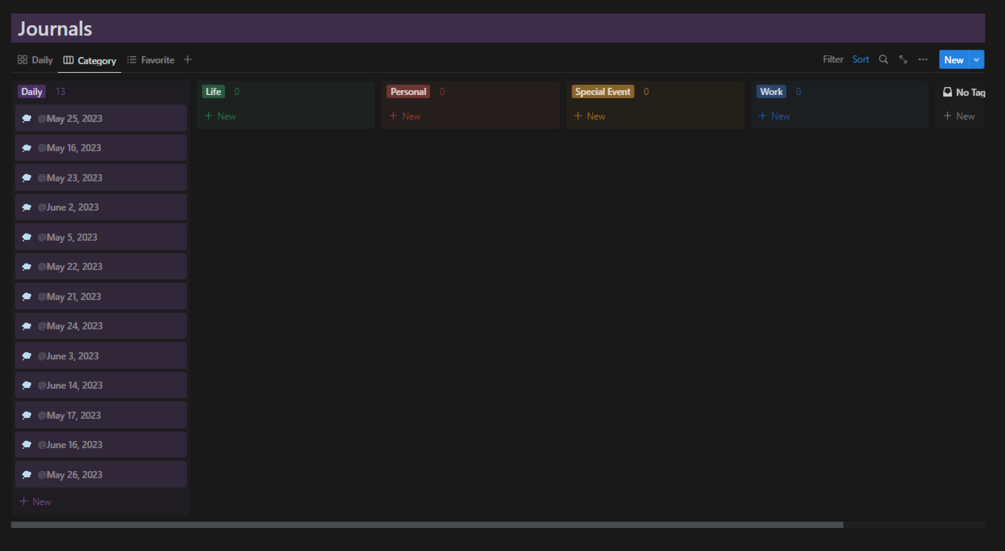 Document your life with ease using our Notion template! Categorize entries with tags and filter them by specific categories like daily or personal.